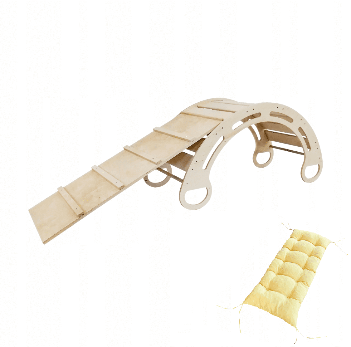 Olakids Montessori gugalnica z blazino (rumena) in toboganom, naravna, 85 cm, 5 v 1, 7 v 1