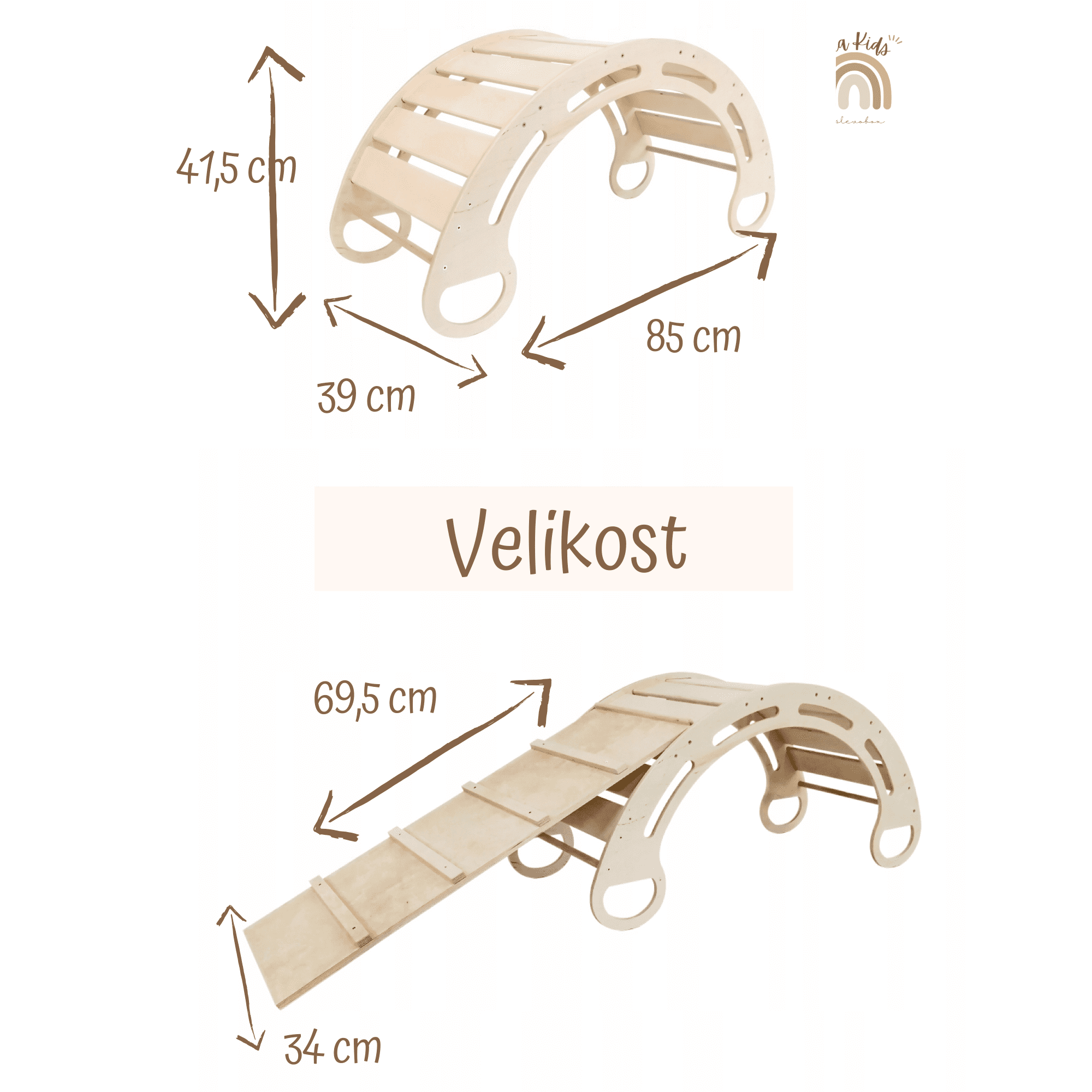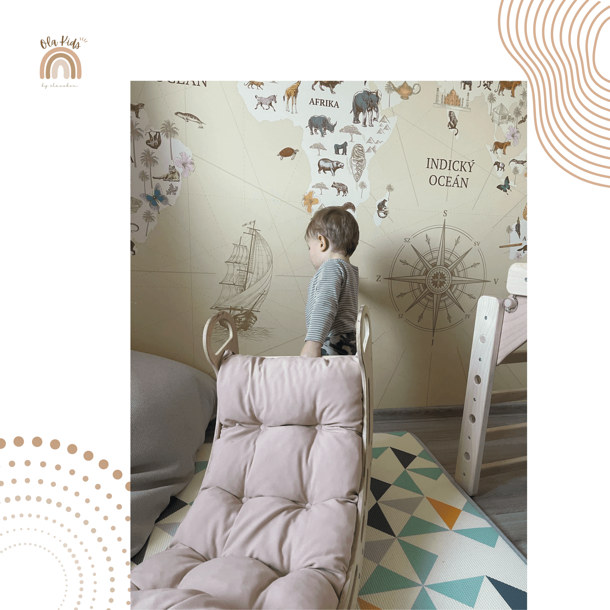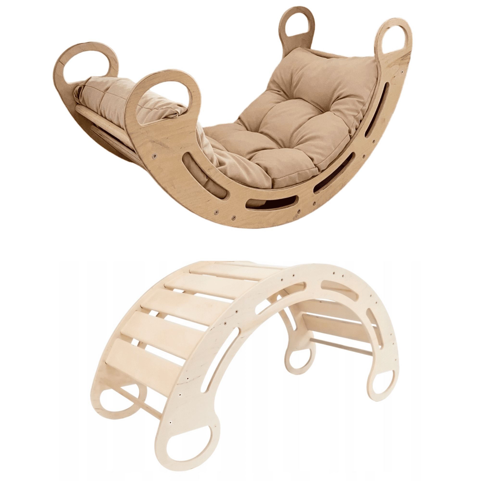 Olakids Montessori gugalnica z blazino (bež) in toboganom, naravna, 85 cm, 5 v 1, 7 v 1