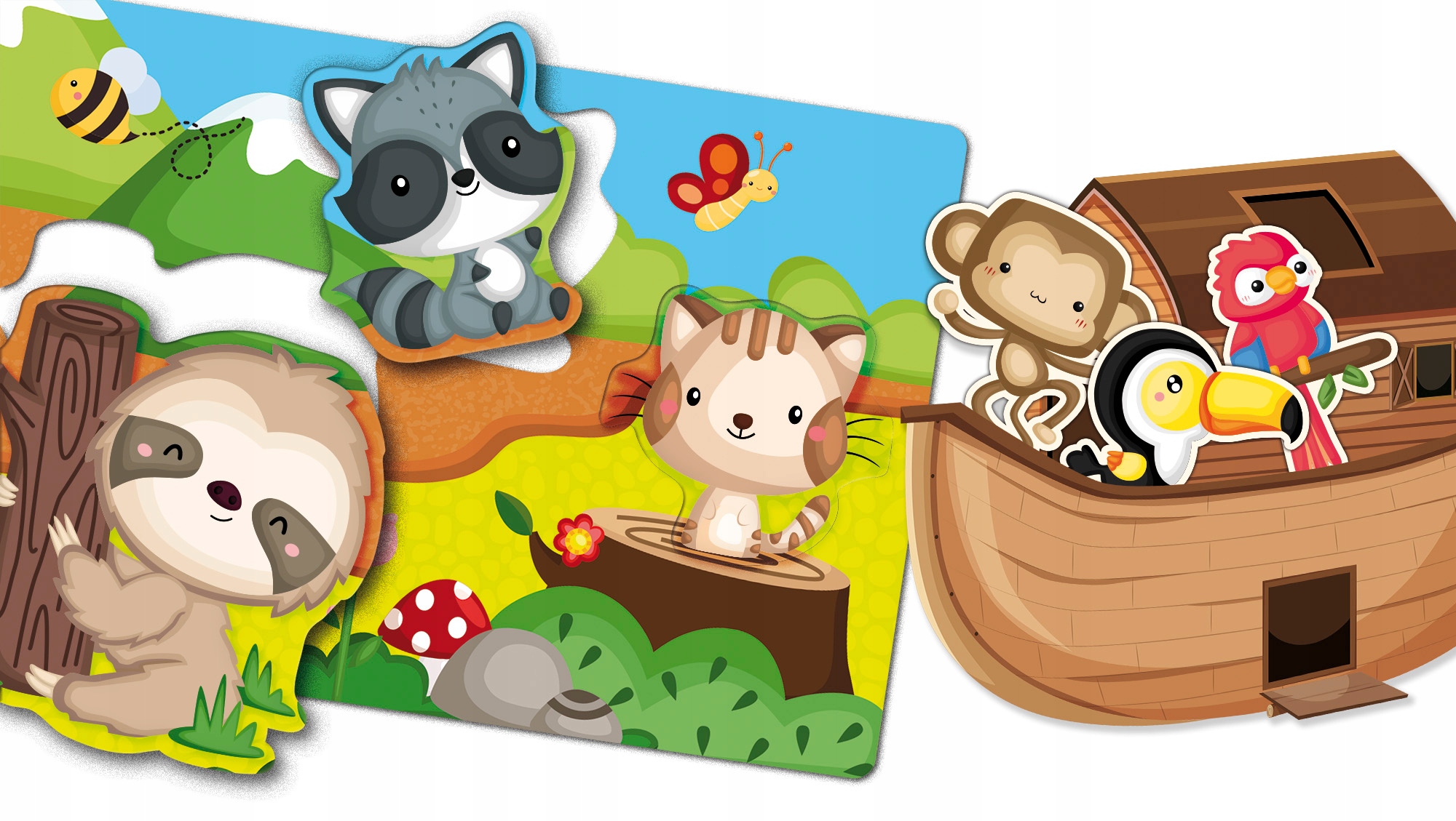 • Paketi vsebujejo dvignjene elemente, naloga otrok pa je, da jih med igro namestijo na pravilna mesta.