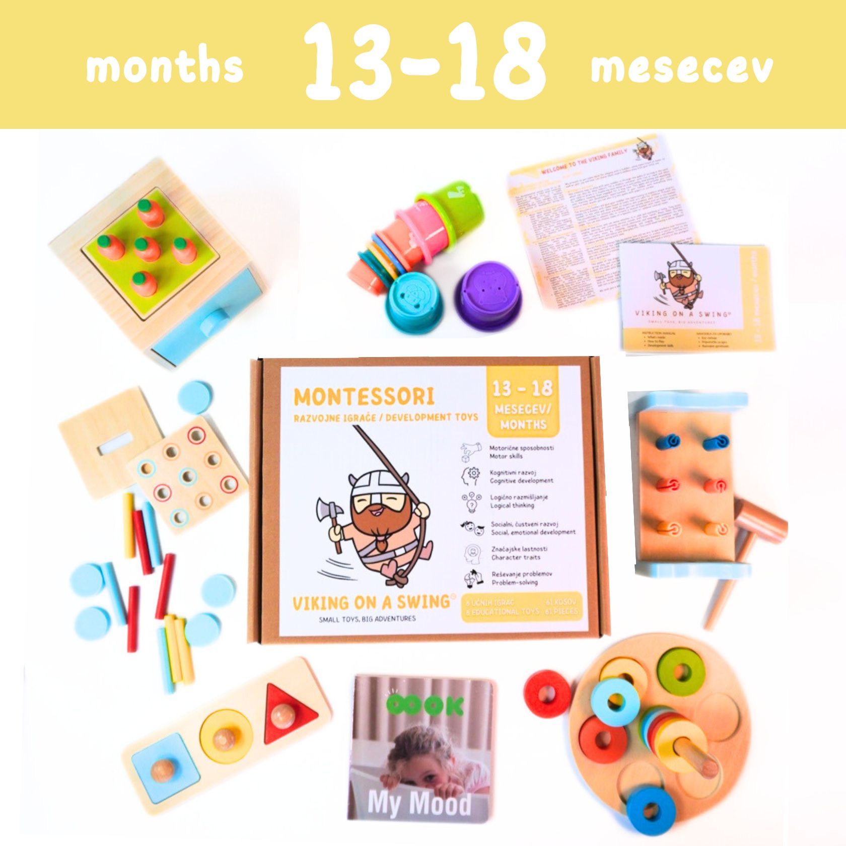 Viking on a swing PAKET 13-18 MESECEV | Montessori igrače za malčka | Paket igrač za otroke za 1 leto stare otroke | Paket igrač prilagojen starosti in razvoju | Razvojne izobraževalne igrače | Darilni paket