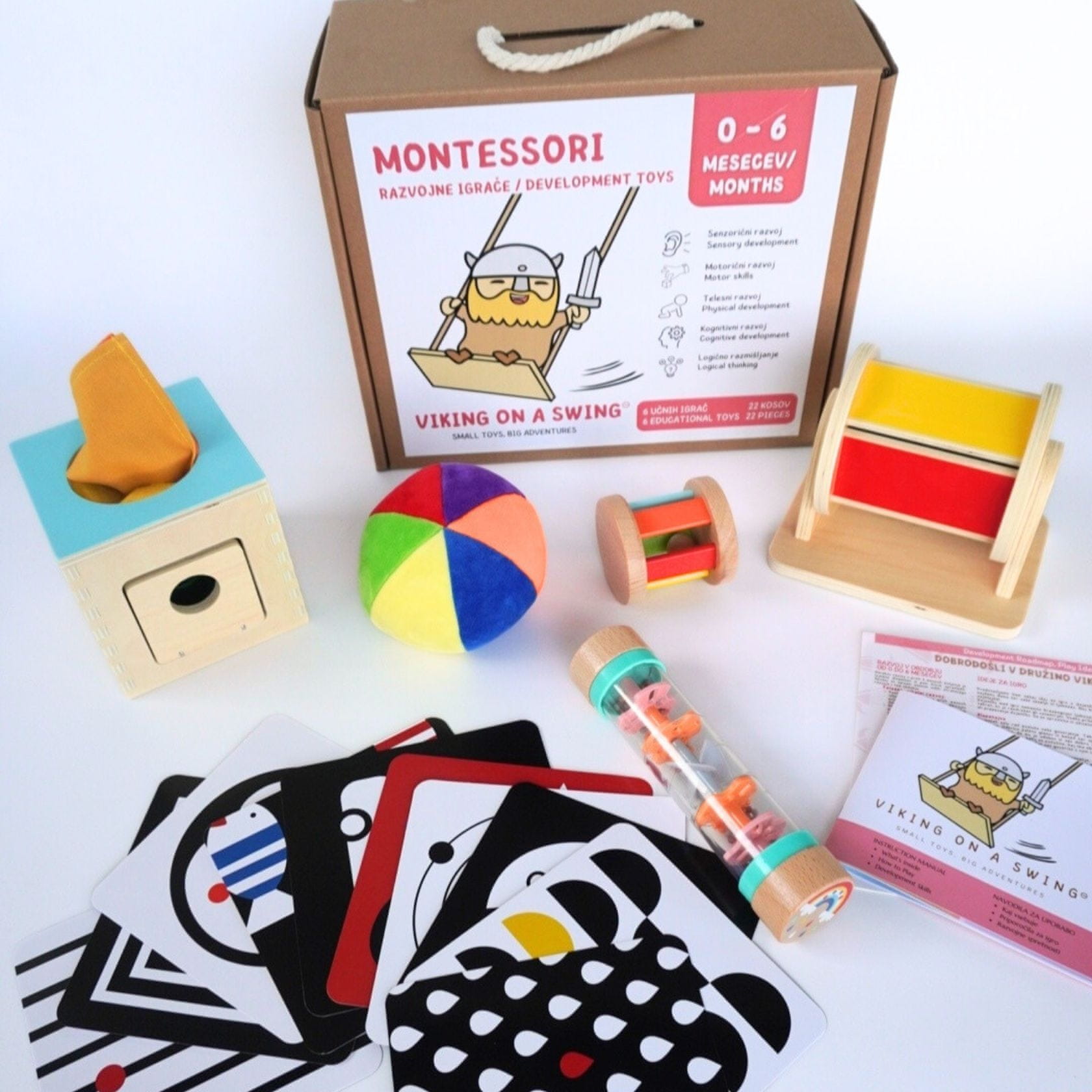 Viking on a swing PAKET 0-6 MESECEV | Montessori igrače za dojenčka | Paket igrač za otroke od rojstva do 6 meseca starosti | Paket igrač prilagojen starosti in razvoju | Razvojne izobraževalne igrače | Darilni paket
