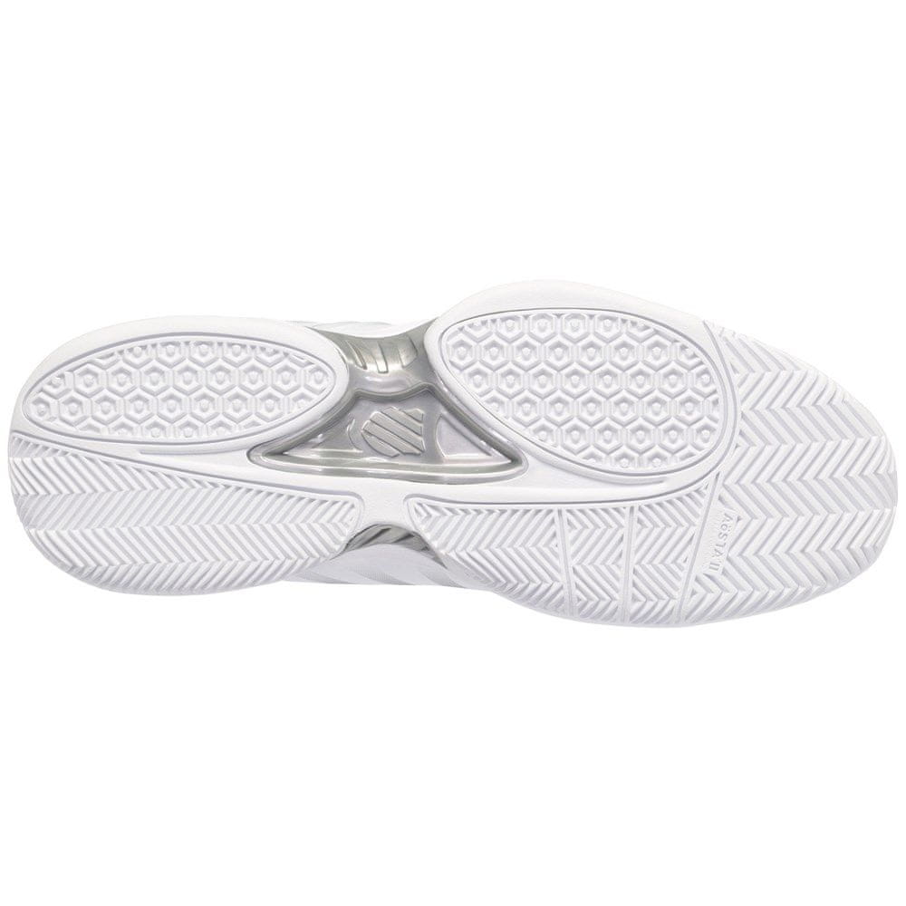 Teniški copati K-Swiss Receiver V ponujajo izjemno stabilnost in optimalno oporo na vsaki tekmi zahvaljujoč TPU konstrukciji v srednjem delu stopala in pete ter podplatu Aösta II z upogibnimi utori. Vsebujejo netekstilne dele živalskega izvora. Celoten opis