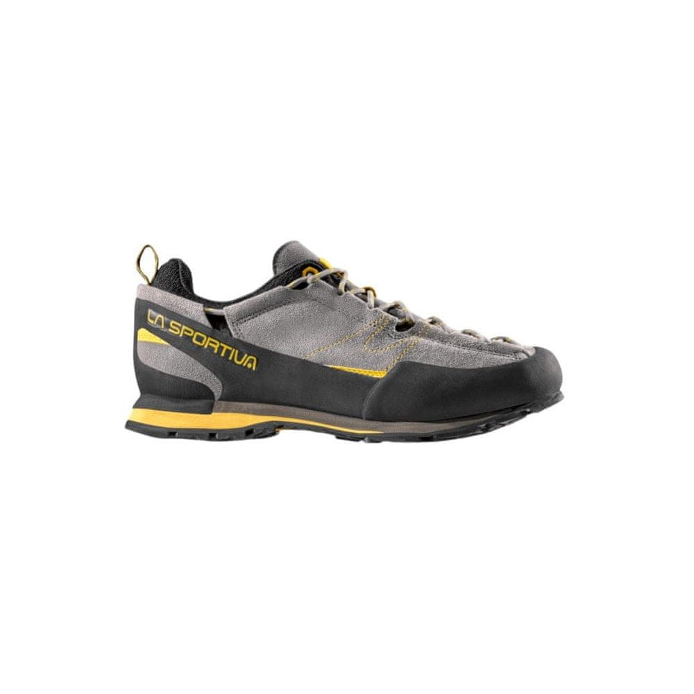 La Sportiva Boulder X Siva/Rumena so napredni pohodniški čevlji, zasnovani tako, da združujejo oprijem, zaščito in udobje na različnih terenih. Njihov zgornji del je izdelan iz semiš usnja z gumijasto kapico, ki ščiti pred odrgninami in mehanskimi poškodbami, zlasti na skalnatih pristopih in strmih poteh.