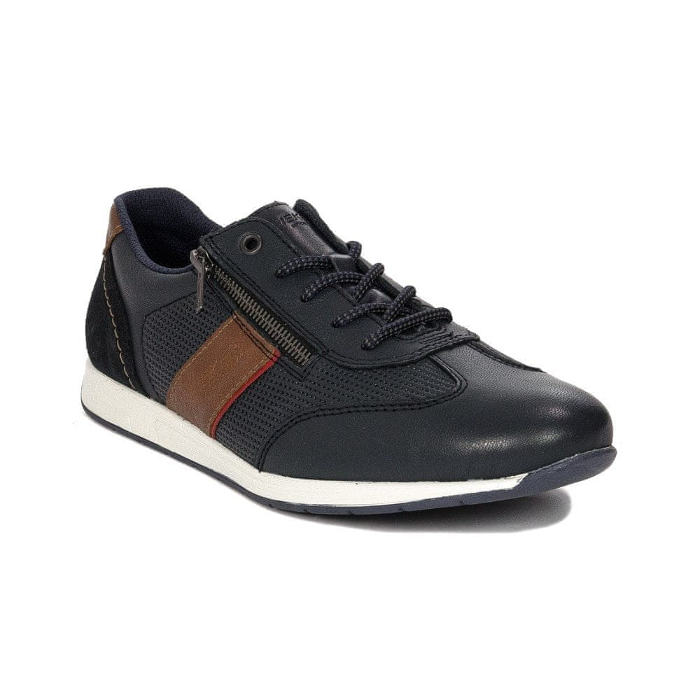 Blagovna znamka Rieker svoje modele posveča ženskam in moškim, ki cenijo udobje in priročnost. Je eno od podjetij, ki daje poseben poudarek ustvarjanju mehkih in prožnih čevljev. Blagovna znamka si prizadeva izpolnjevati pričakovanja strank in si po svojih najboljših močeh prizadeva, da bi bili ti čevlji ne le udobni, ampak tudi ohranili svojo lepoto. Predstavljamo vam moške nizke čevlje te priznane blagovne znamke obutve. Zgornji del je izdelan iz naravnega polnozrnatega usnja (spredaj in ob straneh) in naravnega semiš usnja (zadaj) v modri barvi. Podloga in vložek sta iz mehke tkanine. Vezalke in stranska zadrga omogočata lažje in udobnejše obuvanje in sezuvanje. Model ima raven podplat z višino 2,5 cm pri peti in 1 cm spredaj. So kot nalašč za delo ali družabna srečanja za ljudi, ki cenijo skromen, klasičen in uravnotežen slog.