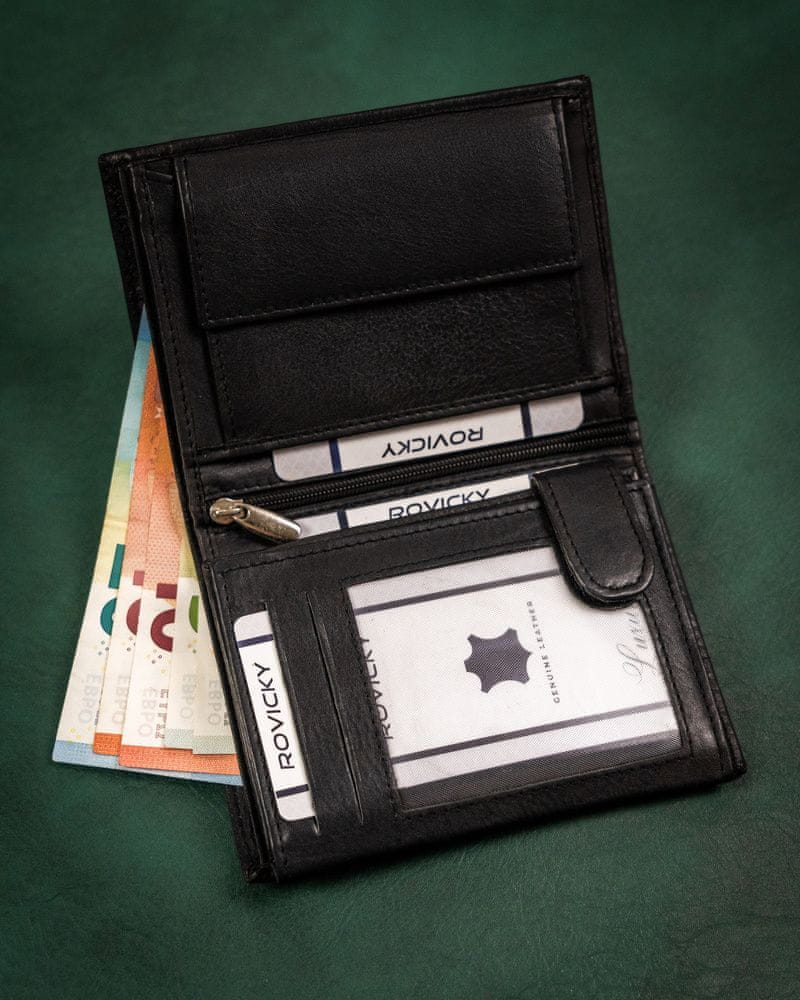 Moška usnjena denarnica brez zunanje zaponke Celoten opis