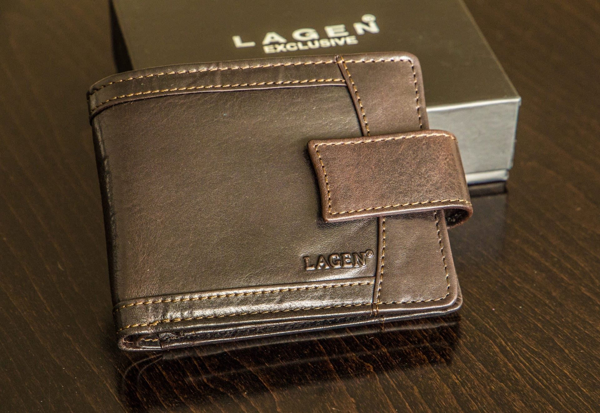 Gentleman's Boutique CASH SAVER Max Dark je razkošna nizka denarnica v celoti iz usnja znanega proizvajalca Lagen iz Zlina, izdelana iz najkakovostnejše strojene goveje kože temno rjave barve. Denarnica CASH SAVER Max Dark je ena večjih in bogato opremljenih denarnic. Gre za prostorno, dobro opremljeno denarnico klasičnih oblik, zato je namenjena predvsem konservativnejšim gospodom, ki imajo raje klasične oblike denarnic. Denarnica ima notranjo kovinsko zaponko, ki zagotavlja varnost denarja in dokumentov. Vanj lahko vstavite bankovce in kovance vseh apoenov ter številne kartice standardne velikosti. Denarnica CASH SAVER Max Dark ima dva predala za bankovce, prostor za 9 kartic/dokumentov standardne velikosti ter prostor za 4 dokumente večje velikosti. Na notranji strani je tudi prostorna torbica za kovance. Dimenzije so 120 × 95 mm. Vse denarnice Lagen so priložene v luksuzni darilni škatli.