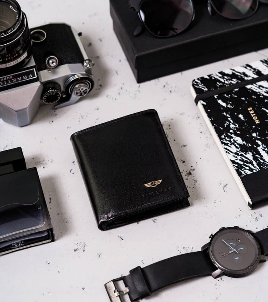 Narejen je iz naravnega umetnega usnja. Moška denarnica v pokončni orientaciji. Kljub majhnosti se v njo lahko spravi dovolj kartic, dokumentov in denarja.Denarnica je opremljena s sistemom STOP RFID.