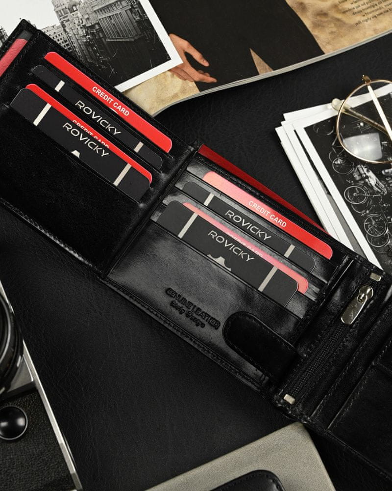 Horizontalna moška denarnica z varnim delom za kartice Celoten opis