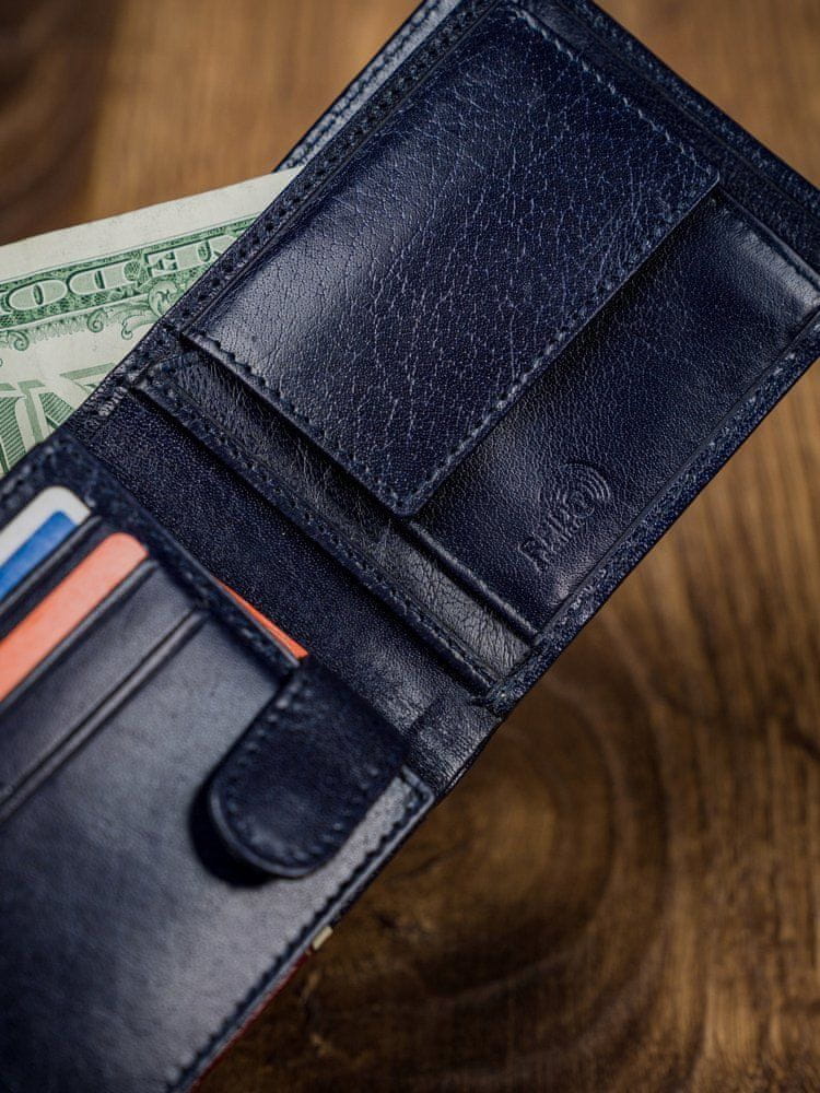 Horizontalna dvobarvna moška denarnica naravno usnje RFID Celoten opis