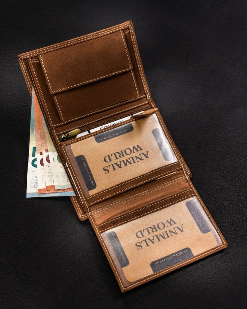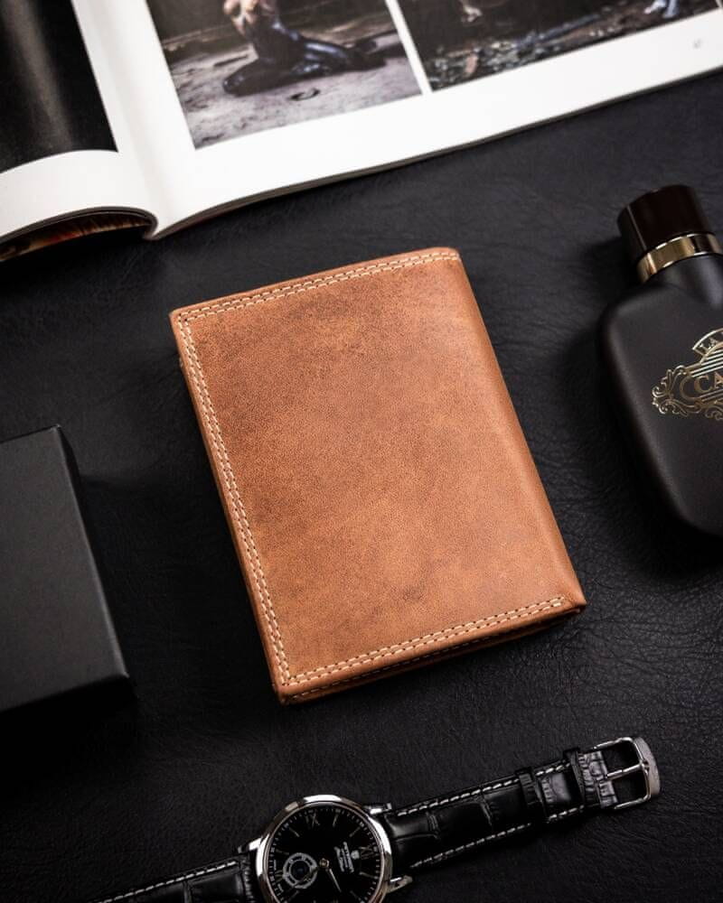 Velika, pokončna moška denarnica iz naravnega usnja Celoten opis
