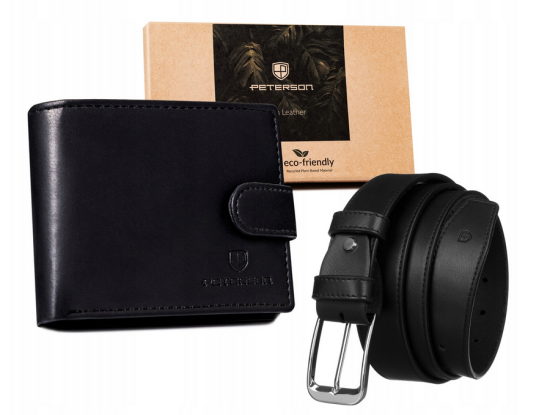 Peterson Darilni set: moška denarnica in pas iz ekološkega usnja