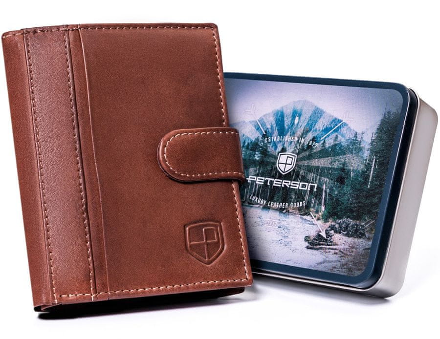 Skórzany, zapinany portfel męski na karty – Peterson Celoten opis