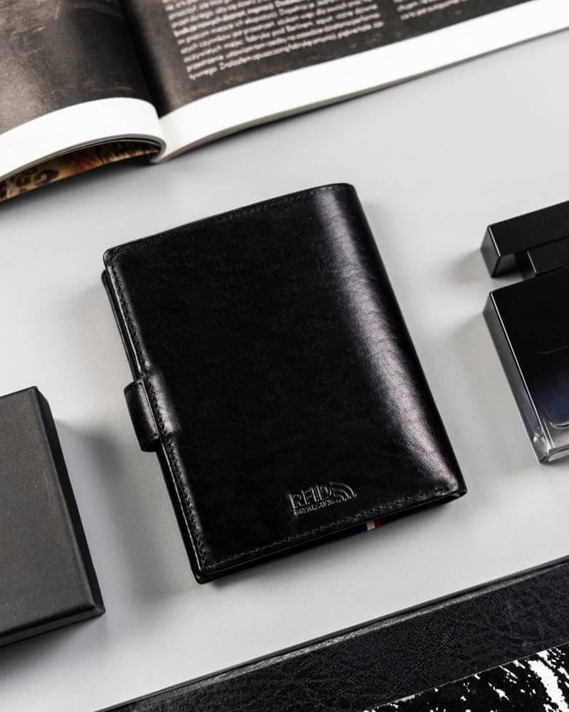 Velika, usnjena moška denarnica na zaponko Celoten opis