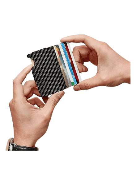 Zasnovan s posebno režo ob strani, so vaše kartice vedno enostavno dostopne. Vrhunski karbonski vzorec na etuiju ne le, da daje denarnici izjemen videz, ampak tudi prijeten občutek na dotik.