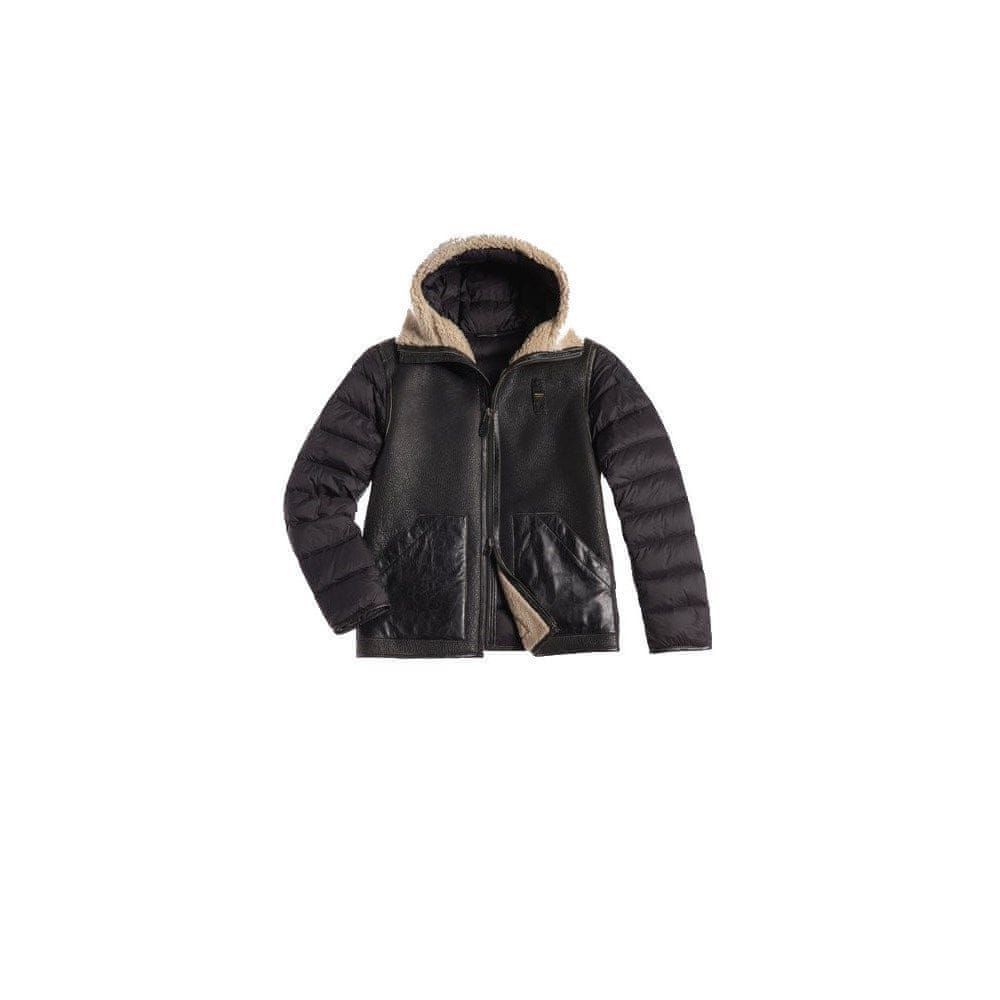 Moška usnjena jakna BLAUER BLUL01137, edinstvena jakna, izdelana iz kombinacije dveh materialov: pravega usnja in visokokakovostnega, prešitega poliamida. Jakna je izolirana s puhom, kar zagotavlja maksimalno toplotno udobje. Zimski značaj poudarja podloga iz naravne ovčje kože na kapuci.