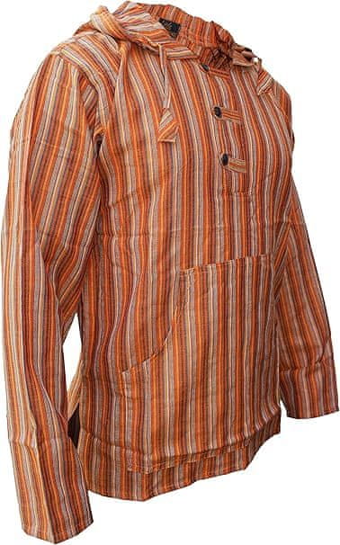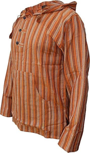 Ta lahka bombažna srajca predstavlja popolno ravnovesje med naravnimi materiali in funkcionalno zasnovo za sproščen življenjski slog. Zahvaljujoč unikatni ročni izdelavi in prepoznavnemu črtastemu vzorcu boste vedno izstopali na festivalih ali potovanjih. Zagotovite si svojo unikatno srajca s kapuco še danes in uživajte v vrhunskem udobju med svojimi naslednjimi pustolovščinami.