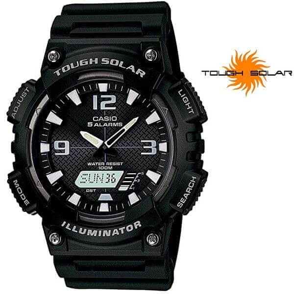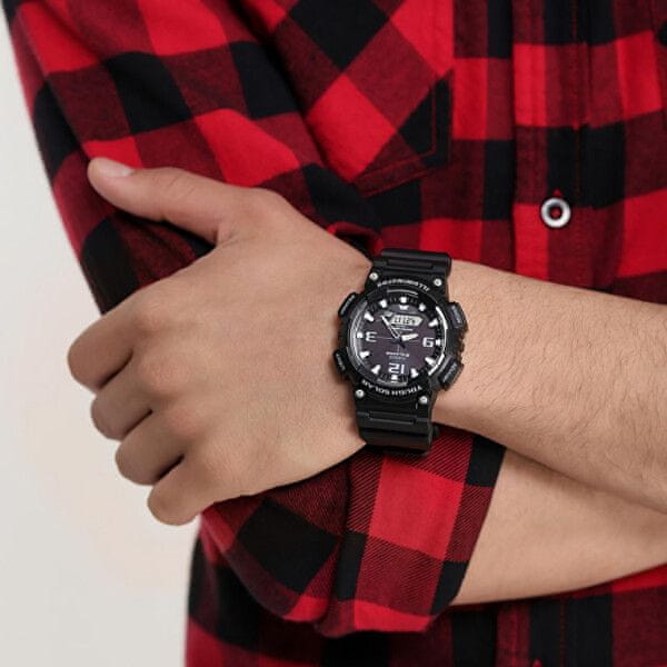 Ne glede na to, ali hodite v hribe ali se odpravite na dolgo kolesarsko potovanje, ure Casio bodo vedno vaš najboljši spremljevalec. Njihova črna številčnica, prekrita s povečevalnim sferičnim steklom, je okrašena z izrazitimi rokami in kazalci, kar zagotavlja popolno berljivost v času. Na dnu boste našli digitalni zaslon, ki ima različne funkcije. Ura ima vodoodpornost do 100 metrov, zato lahko celo plavate z njo. Najbolj pa boste cenili solarno polnjenje, ki se mu nikoli ne bo treba ukvarjati z zamenjavo baterije. Obstaja tudi merilnik baterij, s katerim lahko veste, da vam ura zmanjka in bi morali biti izpostavljeni dnevni svetlobi. Ohišje in jermen se ponašata s klasično črno barvo, ki ustreza skoraj vsem.