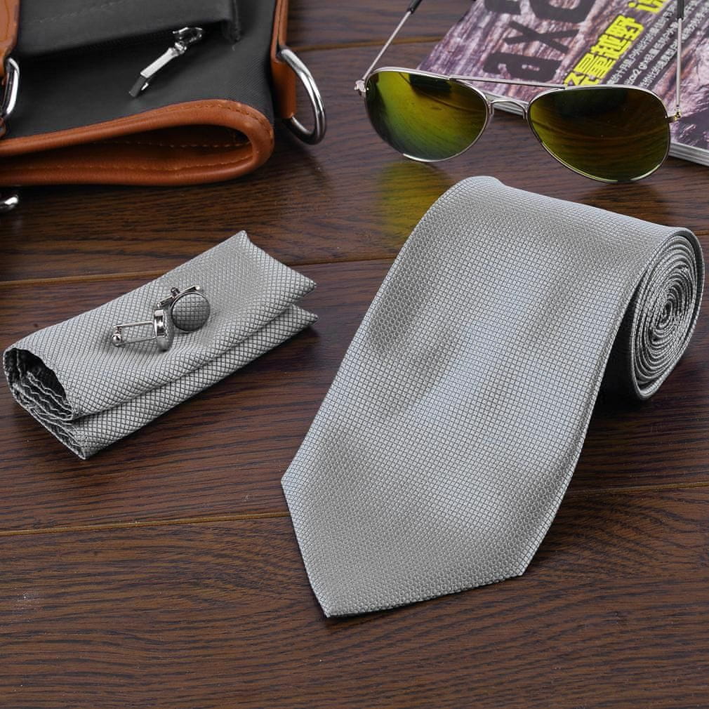 Ne glede na to, ali se odpravljate na večji dogodek, zabavo z najdražjimi ali pa boste preprosto čedni v pisarni, vaša obleka potrebuje nekaj dodatkov, da postane popolna! Izbirajte med različnimi barvami, za katere menite, da ustrezajo vašemu slogu, okusu in priložnosti. Kravata je dolga 150 cm in ima priložen robček enake barve 20×20 cm, oba iz sijoče svile. V komplet je vključen tudi par barvno ujemajočih se manšetnih gumbov, ki dopolnjujejo vašo obleko.