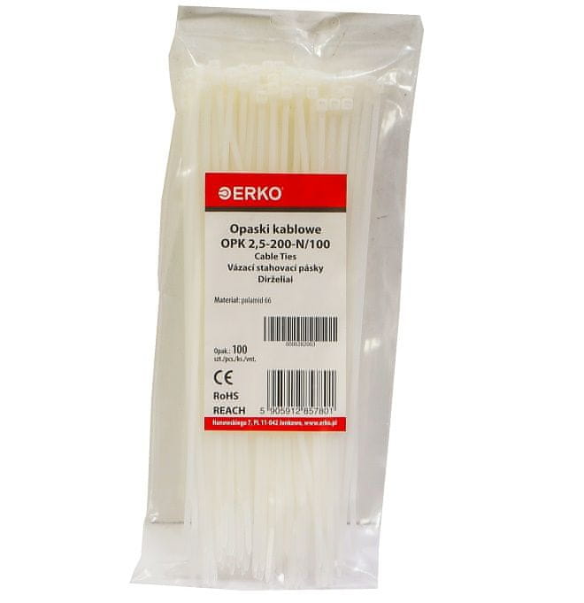 shumee Bela kabelska vezica OPK 200/2,5, pakiranje 100 kosov ERKO