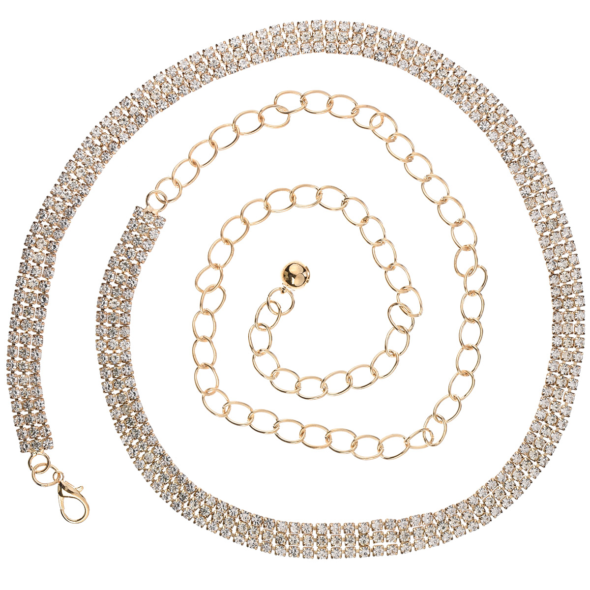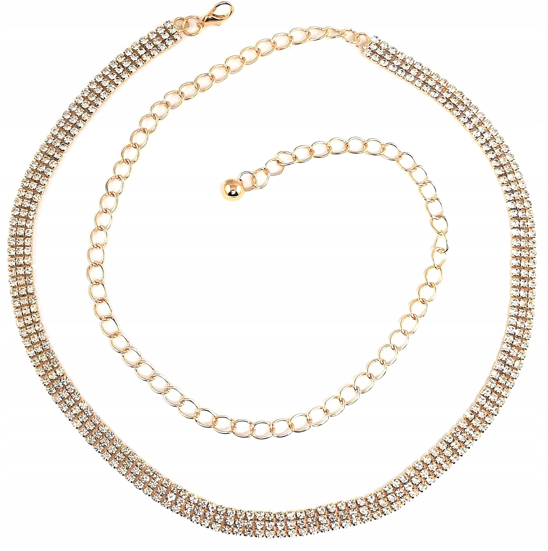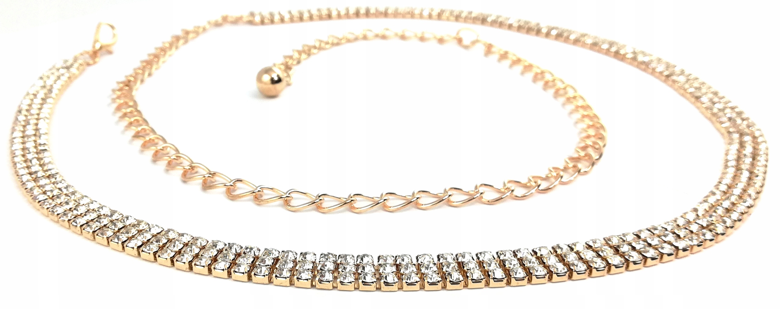 Eleganten zlat pas, okrašen s kristali je popoln dodatek za vsako žensko, ki želi poudariti svojo edinstvenost in slog,