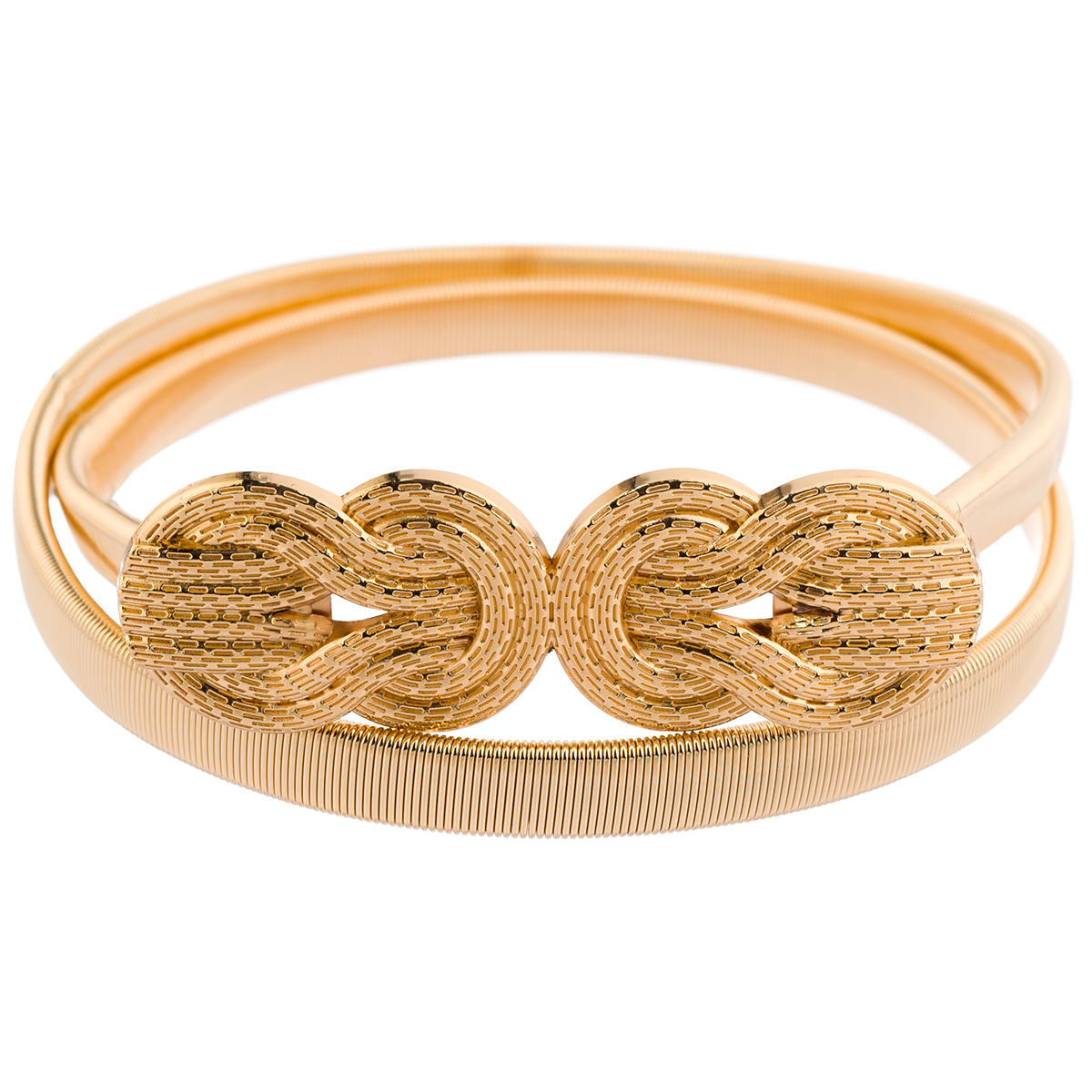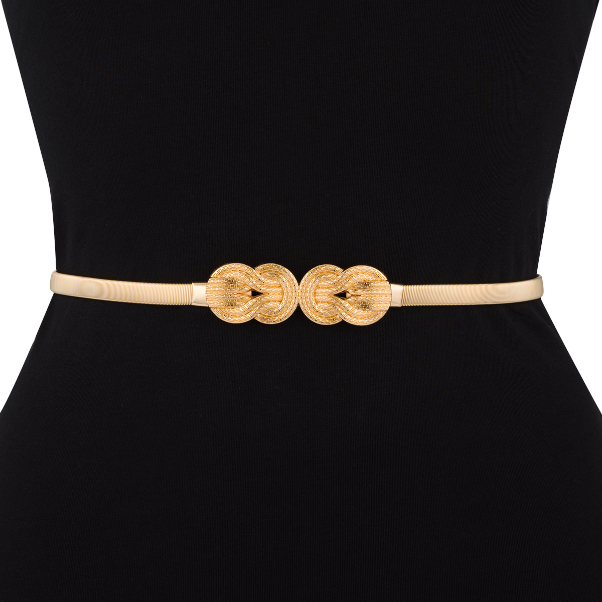 Ta okrasni pas v zlati barvi ne samo pritegne pozornost , hkrati pa zagotavlja udobje nošenja zaradi svoje raztegljive konstrukcije,