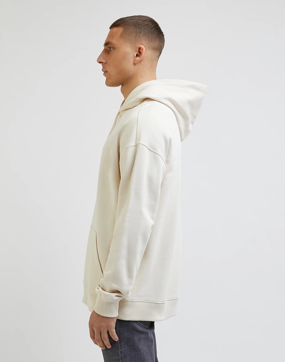 shumee Lee Loose Logo Hoodie Ecru Zelo ohlapna bela jopa s kengurujevo torbico Velikost XL