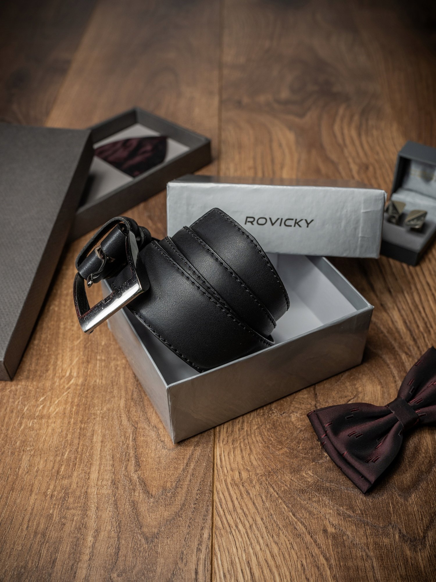 Klasični, gladek moški pas s tradicionalno srebrno zaponko – Rovicky
