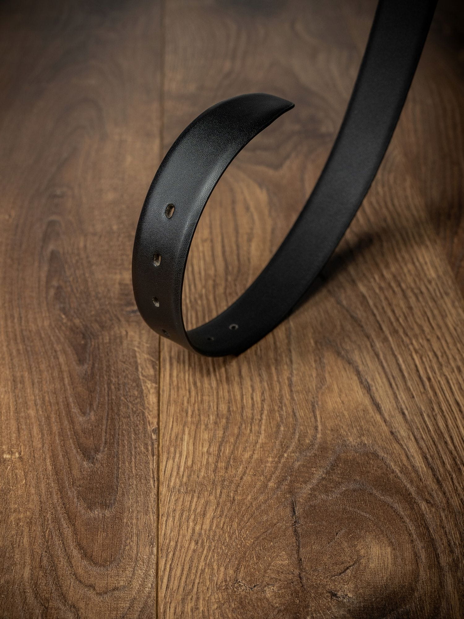 Iz visokokakovostnega črnega pravega usnja s klasično, preprosto kovinsko zaponko.