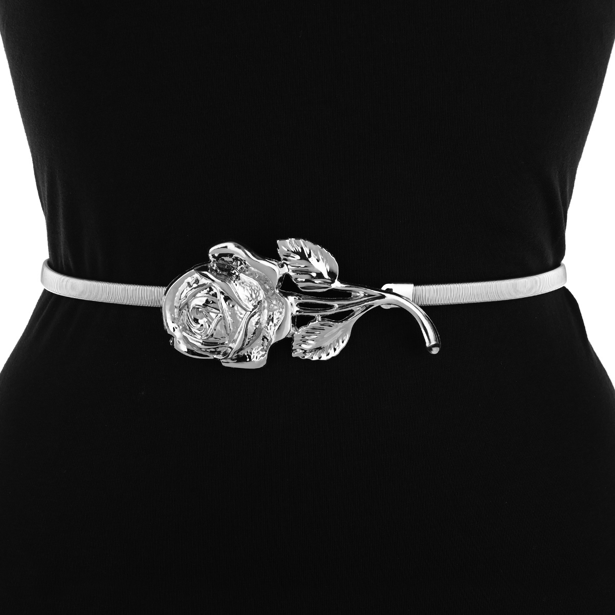 Ta okrasni pas v srebrni barvi ne le pritegne pozornost , pa tudi zagotavlja udobje nošenja zaradi svoje raztegljive konstrukcije,