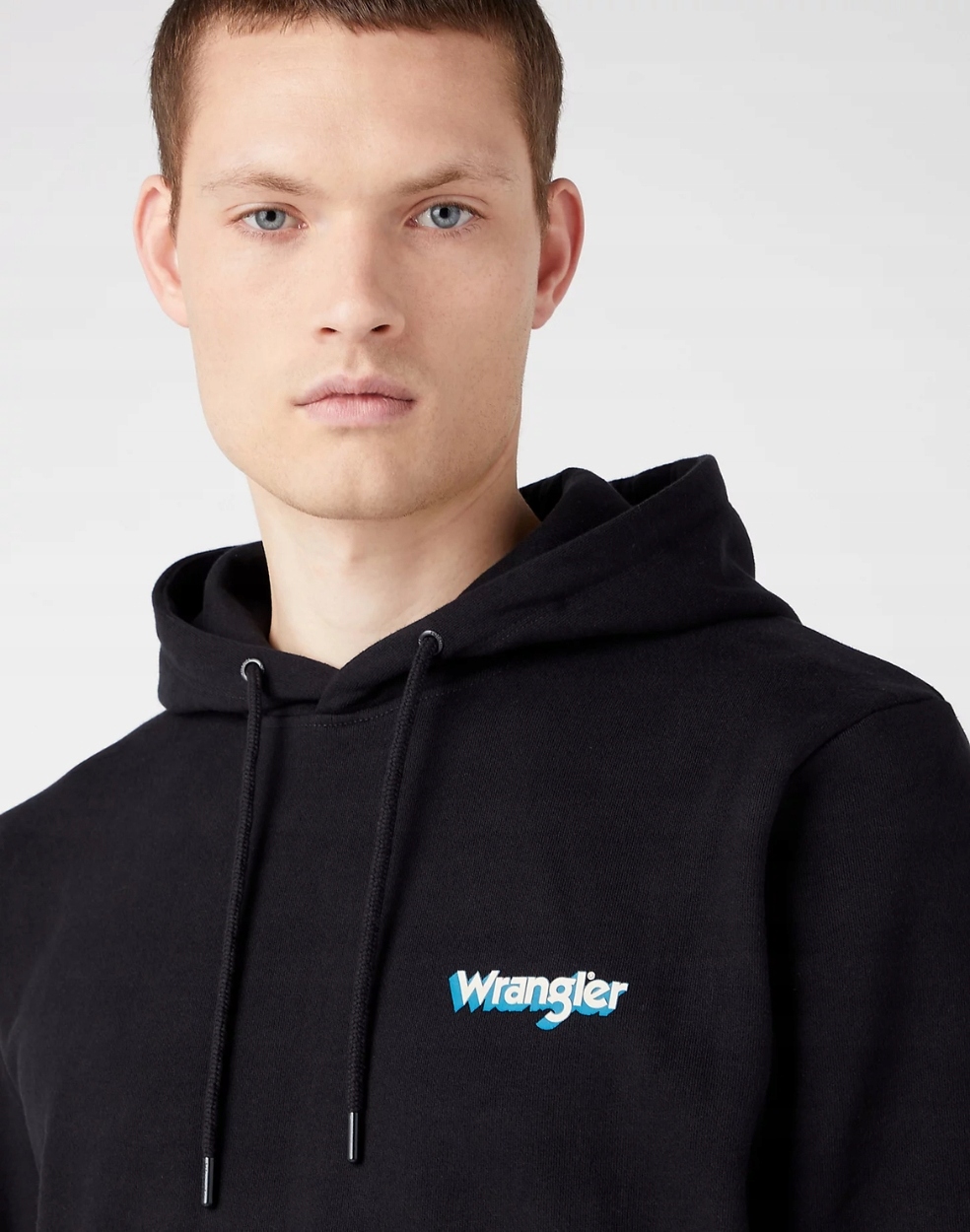 - Model: Pulover s kapuco in logotipom iz kolekcije We Care, Wrangler