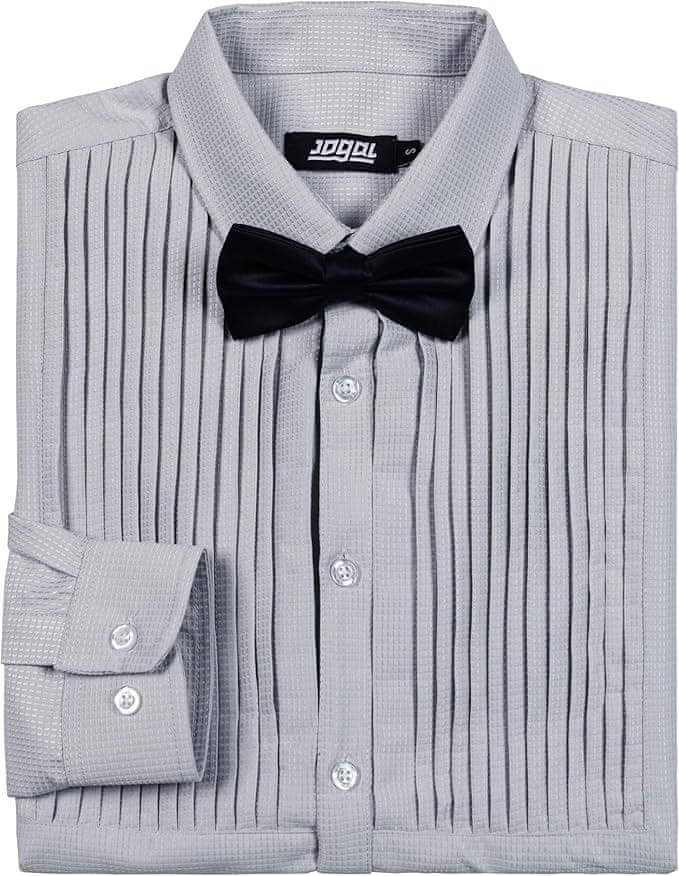 Siva moška formalna srajca z dolgimi rokavi v velikosti XL je odlična izbira za moške, ki želijo združiti eleganco z udobjem. Regularni kroj in klasično zapenjanje na gumbe poskrbita, da je srajca odlična za vsako formalno situacijo. Zahvaljujoč dodatnemu metuljčku je komplet popoln in pripravljen na posebne priložnosti. Naročite še danes in poudarite svoj slog na eleganten način.
