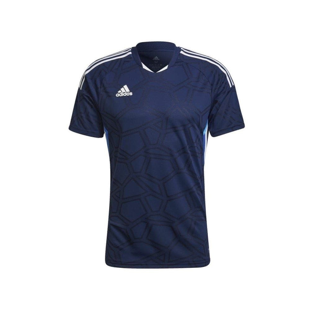 Ta dizajn iz kolekcije Condivo je predstavljen v modri različici, ki jo dopolnjuje bleščeča grafika, navdihnjena z žogo, ki zadene gol, kar ponuja široko paleto možnosti športne opreme.