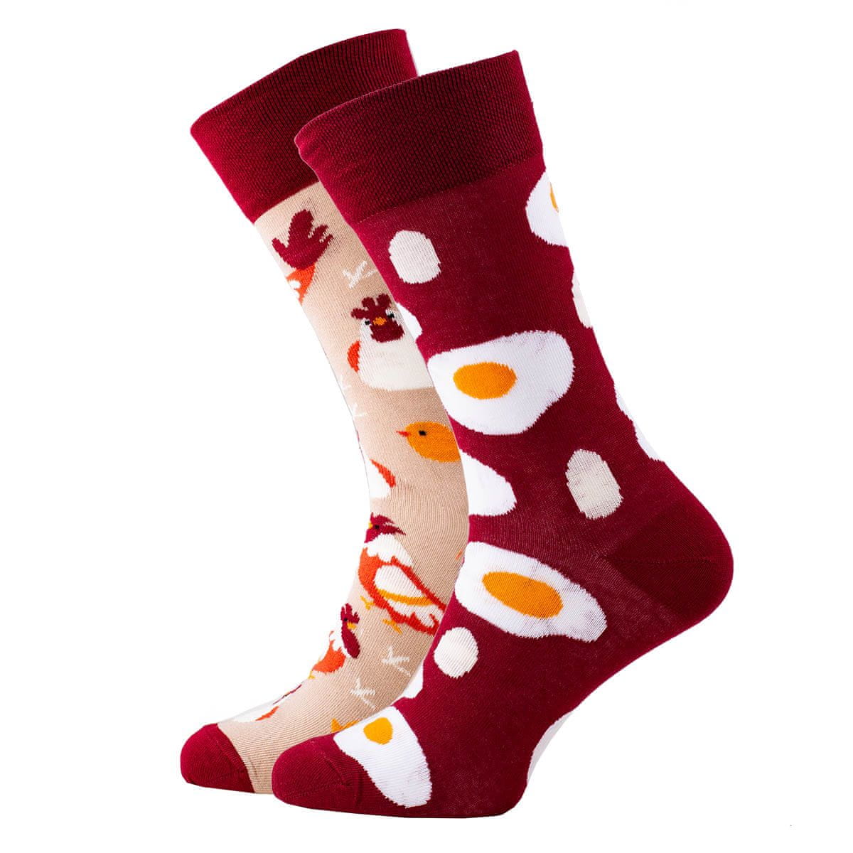Many Mornings Moške barvne nogavice Egg and Chicken rdeča vel. 39-42