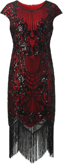 Nikcorp Sukienka Damska Kostium Wielki Gatsby Lata 20 Koktajlowa Cekiny Czerwona S