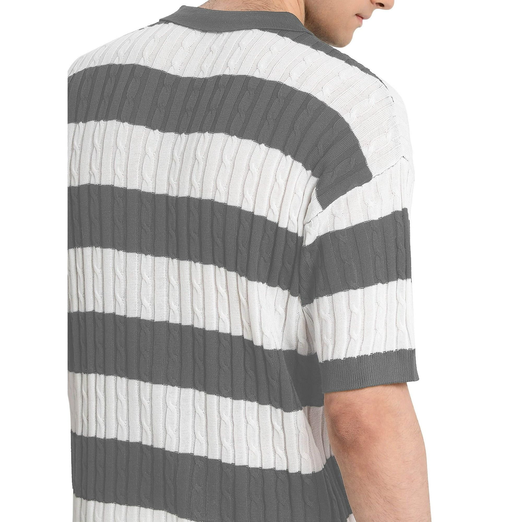 Nikcorp Moška polo majica s kratkimi rokavi, pletena s črtami, retro videz, rebrasta tekstura, siva, velikost M