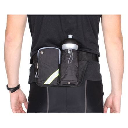 Tekaški pas s prostorom za shranjevanje mobilnega telefona in plastenke. Celoten opis