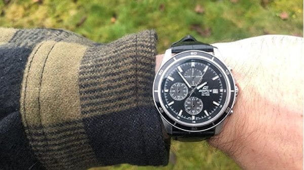 Ura Edifice iz delavnice Casio je kot nalašč za vsakega sodobnega gospoda. Njihova črna številčnica je okrašena s svetlečimi kazalci in indeksi, ki zagotavljajo popolno berljivost časa. Cenili boste tudi tri kronografe, ki služijo kot štoparice. Na mestu 3 je tudi okence z datumom. Ohišje, okrašeno s črnim okvirjem, je izdelano iz visokokakovostnega nerjavečega jekla, usnjen pašček je prav tako črn in okrašen z elegantnim krokodiljim vzorcem. Ura ima vodoodpornost do 100 metrov, zaradi česar lahko prenese tudi plavanje v vodi. Ne glede na to, ali nosite popolno krojeno obleko ali udobno majico s kavbojkami, s tem elegantnim dodatkom ne boste nikoli zgrešili.