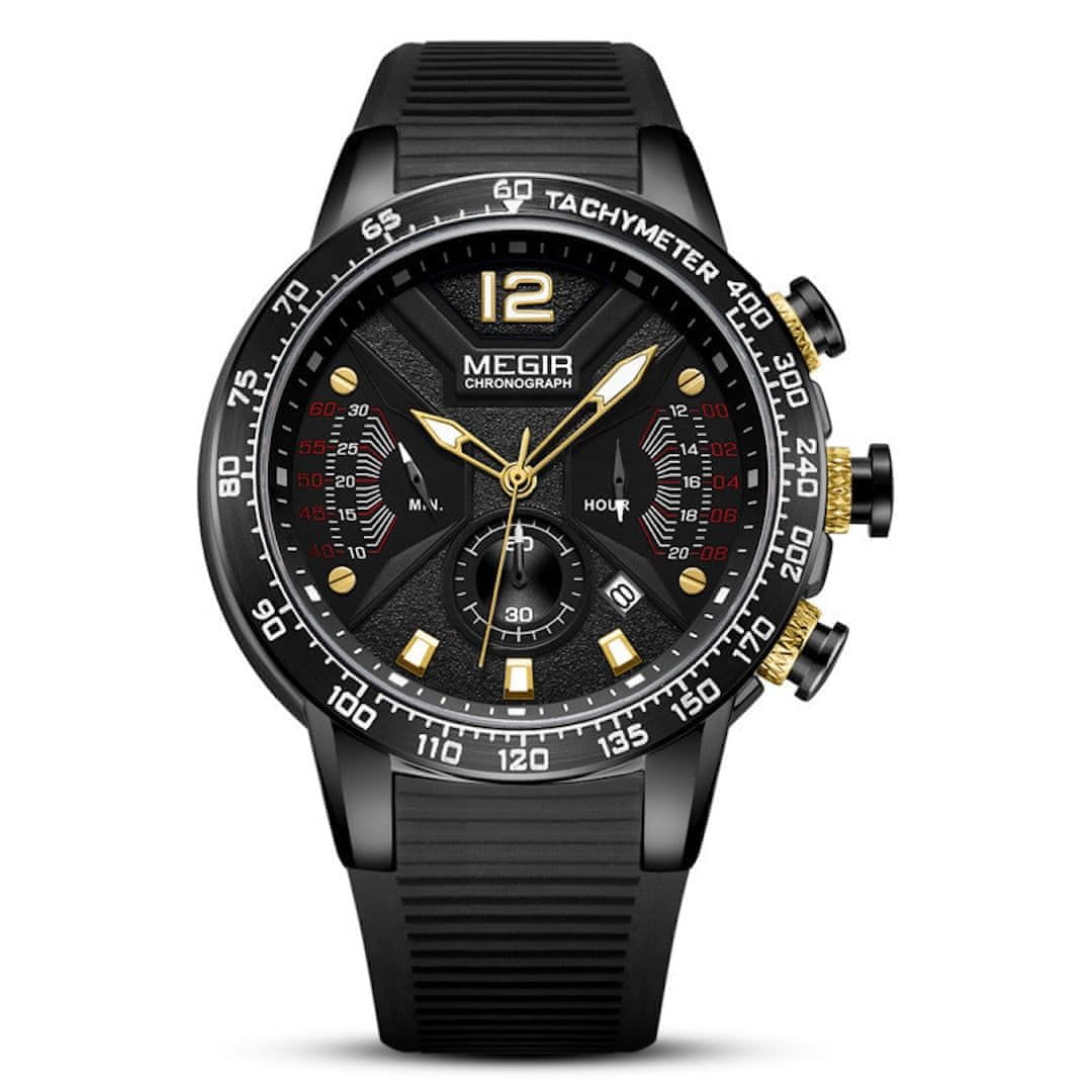 Moška ročna ura Megir Splendid je športno elegantna modna ura z analognim prikazovalnikom in silikonskim paskom.