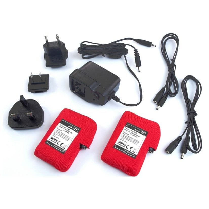 Set vključujeogrevane univerzalne rokavice Glovii GLB2× baterija 2100mAhpolnileckomplet adapterjev (EU, UK, US)2× dodatni podaljšek za priklop na baterijepriročen primerGarancija: 2 leti