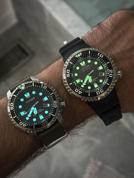Solarni mehanizem Citizen Eco-Drive, ki se polni z naravno in umetno svetlobo, zagotavlja natančno delovanje. Ko je popolnoma napolnjena, lahko deluje do 180 dni brez dodatnega vira svetlobe. Jasno oblikovano številčnico dopolnjuje neopazen prikaz datuma na položaju štiri ure. Mehak črn pašček je idealna izbira za dolgotrajno nošenje čez potapljaško opremo.