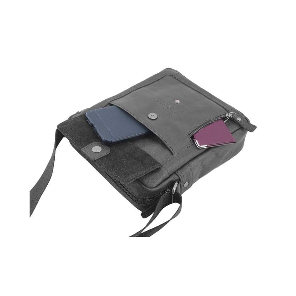 Torba za čez ramo s predalom za tablico italijanske znamke Aeronautica Militare iz kolekcije Vintage. Ta torba je kot nalašč za vsakodnevno uporabo in je izdelana iz visokokakovostnega pravega usnja za tiste, ki cenijo klasičen in brezčasen videz. Značilnosti torbe vključujejo glavni predal z visokokakovostno zadrgo, sprednji žep z zapiranjem na preklop in notranji žep z zadrgo. Navpični žep z zadrgo za hiter dostop. Skriti žep z zadrgo na zadnji plošči sprejme tablico do 25 cm. Udoben in nastavljiv trak omogoča nošenje čez ramo. Visokokakovostna podloga. Notranji organizator s praktičnimi žepi zagotavlja, da bodo vaše potrebščine ostale organizirane. Kovinski detajli z značilnim logotipom in vtisnjenim napisom Aeronautica Militare dodajo eleganten in privlačen pridih. Torba je zasnovana s praktičnostjo in funkcionalnostjo v mislih, je lahka in skrbno izdelana.