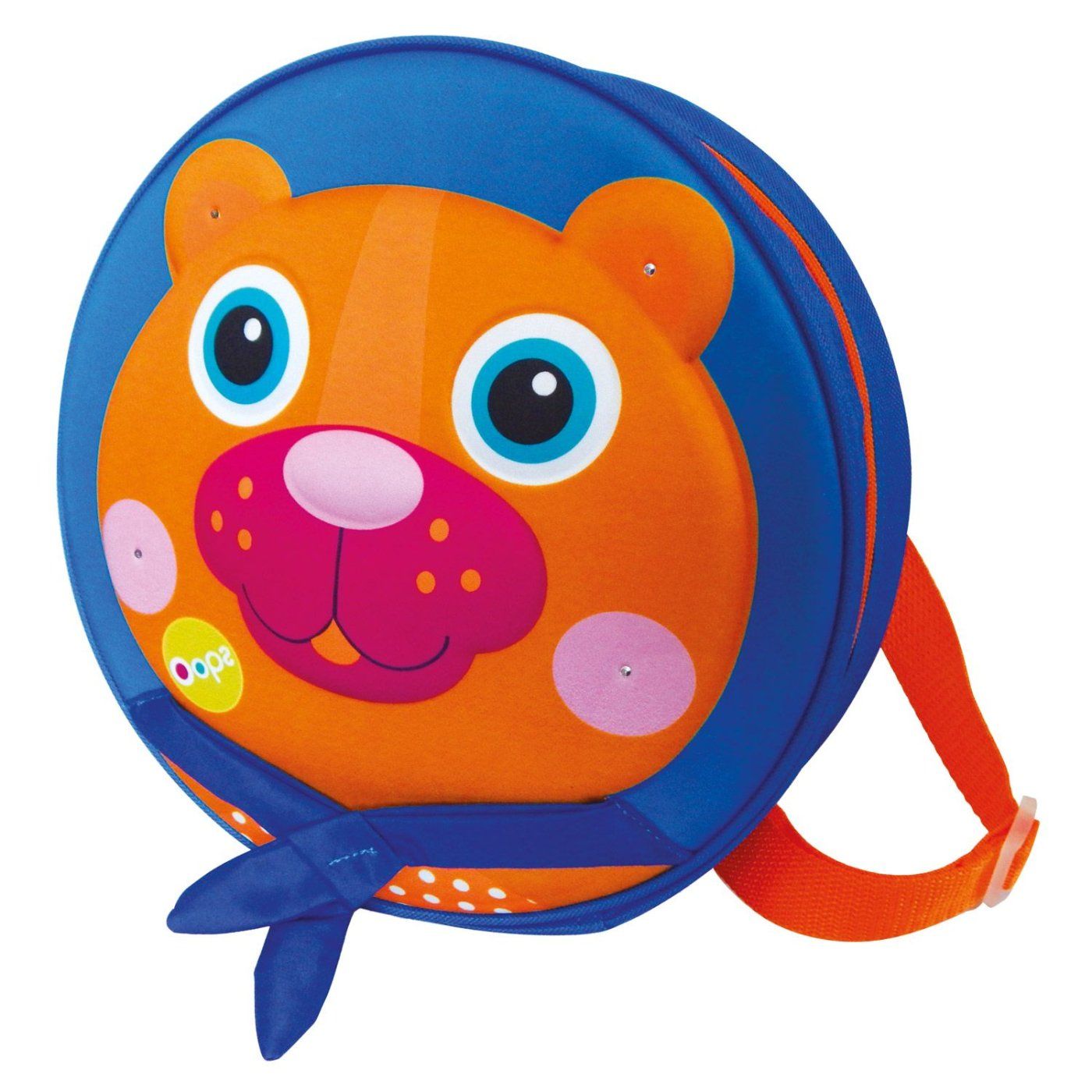 Barvni okrogli nahrbtnik z motivom medveda, izdelan iz etilen vinil acetata, zato je izjemno trpežen in vzdržljiv. Z nastavljivimi trakovi iz polipropilena, velikost približno 7,5×26,5×26,5 cm. Za otroke, starejše od 18 mesecev. Upoštevajte: dolžino trakov naj nastavijo odrasli.