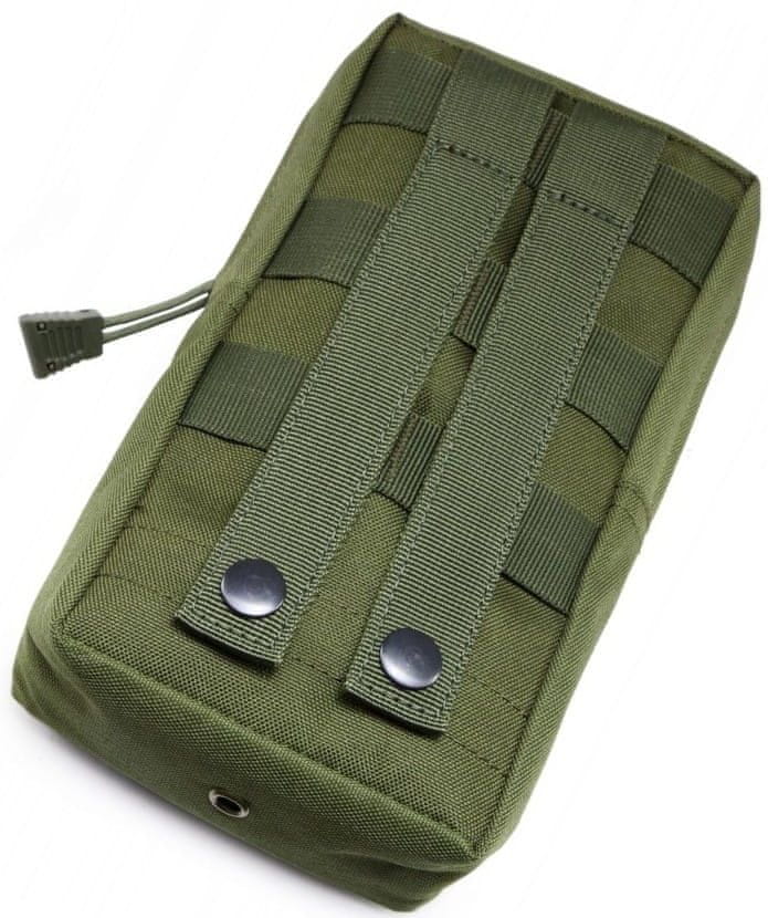 Dodatki, kot sta dva traku s kovinskima karabinoma, dodatno širijo možnosti uporabe torbice, in sicer na nahrbtnikih, torbah, jopah ali pasovih. Na dnu torbice se nahajajo predelki s premerom 5 mm za dodatno shranjevanje. Ne glede na to, ali ste vojak, turist ali navdušenec nad naravo, ta torbica nudi zanesljivo in udobno rešitev za shranjevanje vaših potrebščin.