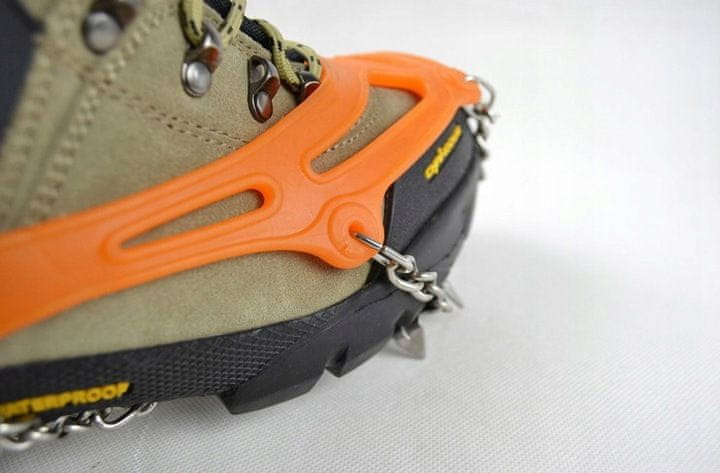 Elastične protidrsne dereze za čevlje 36–45 so nepogrešljiva oprema za vsakogar, ki se odpravi na pohod v gorovje. Te elastične in trpežne dereze z protidrsnimi konicami zagotavljajo odličen oprijem na spolzkih površinah, kot so vodene in sneg. Osem enakomerno razporejenih zob iz kaljenega jekla na podplatu omogoča varno hojo tudi po zahtevnejših terenih. Vse dele povezuje veriga iz nerjavečega jekla, kar podaljša življenjsko dobo izdelka. Silikonski material ohranja svojo elastičnost tudi pri nizkih temperaturah in omogoča enostavno nameščanje na katerikoli tip obutve. Paket vključuje priročno vrečko, ki olajša prenašanje in shranjevanje. Idealno za vse, ki iščejo dodatno varnost in udobje na svojih zimskih avanturah.