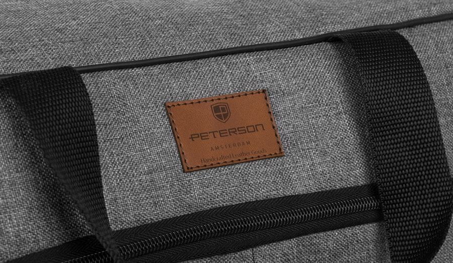 Udobna potovalna torba z enim predelkom priznane poljske znamke PETERSON. Model v klasičnih barvah, ki se zlahka prilega vsakemu stilu. Izdelana tako, da izpolnjuje zahteve letalskih prevoznikov glede brezplačne ročne prtljage.