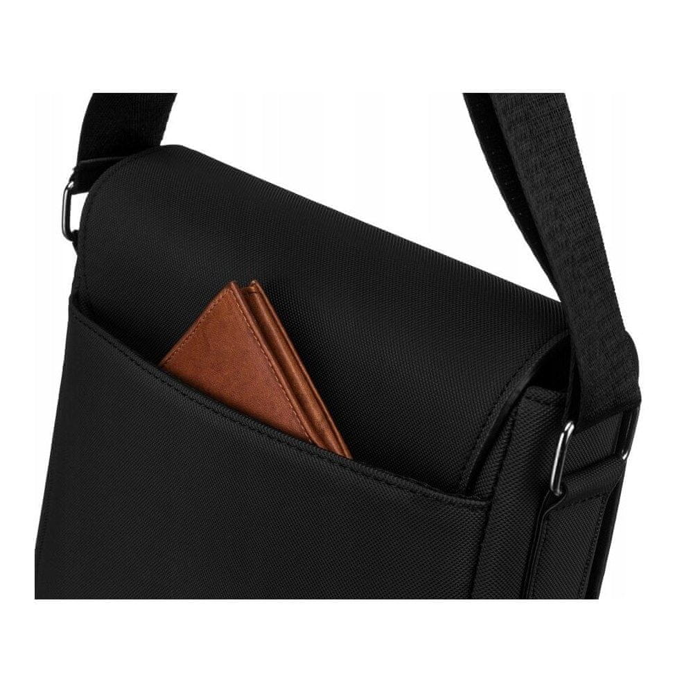 Moška torba za čez ramo z zavihkom v črni barvi, izdelana iz Cordure – Rovicky Moška eleganca | Elegantna, praktična torba za čez ramo, ki se bo podala tako k vsakodnevnim oblačilom kot tudi tistim za posebne priložnosti; Visokokakovosten material | Izdelana iz visokokakovostne Cordure; Prostorna n Celoten opis