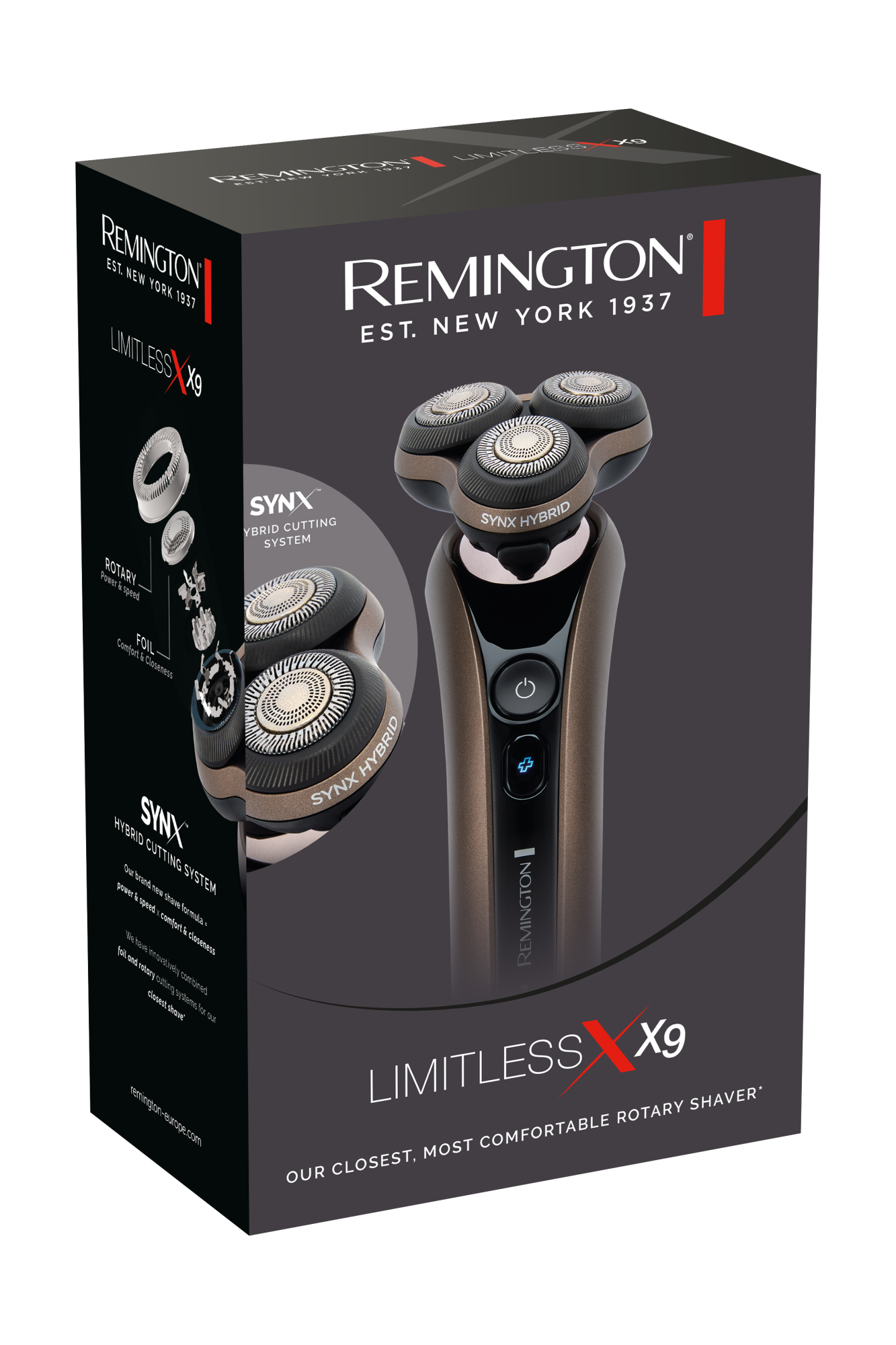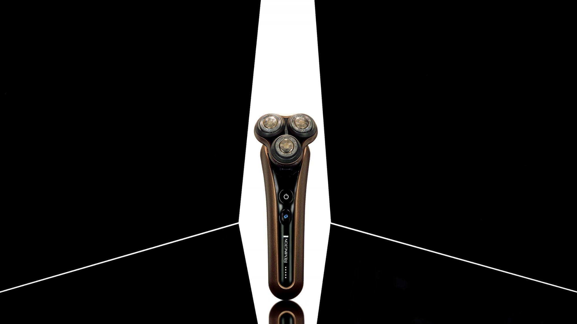 Remington X9 Limitless X Rotary brivnik. Prilagojeni sistem LED se nauči, kako dolgo se brijete, in vam na podlagi vaših povprečnih vzorcev uporabe pokaže, koliko britja vam je še ostalo. Hibridni rezalni sistem SynX zagotavlja gladko izkušnjo in rezultat pri vsakem britju. Pivotball in posamezna upogljiva rezila se prilagajajo konturam vašega obraza in zagotavljajo največji stik, medtem ko obročki za udobno britje zagotavljajo 30 % manjše trenje, kar pomeni manj draženja.