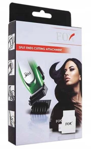 FOX Nastavek za striženje razcepljenih konic – bel Nastavek za profesionalne frizerske strižnike Profesionalni nastavek za frizerske strižnike, s katerim lahko enostavno pristrižete do 100 % razcepljenih konic las, po celotni dolžini. Prireže od 3 do 10 mm dolžine vsakega posameznega razcepljenega lasu. Priporočljivo za striženje las po frizerskih tretmajih, kot so posvetljevanje, barvanje, pa tudi za tradicionalno striženje poškodovanih konic. Maksimalna zaščita po celotni dolžini las. Primeren za večino frizerskih strižnikov. Nastavek ustreza večini profesionalnih frizerskih strižnikov, vendar ne odgovarjamo v primeru nezdružljivosti z vašim strižnikom. Vsekakor ustreza: FOX strižniki: Techno / Tango / Swing Barva: Bela