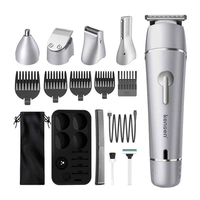Z električnim brivnikom Kensen 5v1 lahko poskrbite za brado in lase. Poleg tega je opremljen z glavami za odstranjevanje grdih dlak okoli nosu, ušes in telesa. Zaradi svoje pametne zasnove ne povzroča občutka vlečenja ter zagotavlja natančno britje in striženje. Poleg tega deluje tiho, je vodoodporen in zagotavlja udobje.