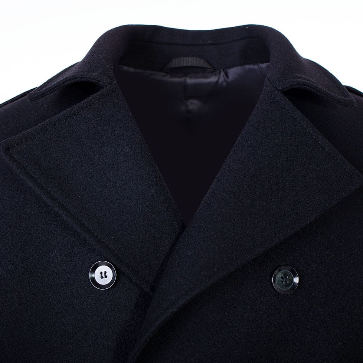 Popis:Moški volneni plašč s kašmirjem. Topla podloga z zadrgo. Zgornji del plašča se zapenja z dvema vrstama gumbov. Dolžina pod zadnjico. Okraski na rokavih in ramenih.Materiál: 70% volna, 20% kašmir, 10% poliamid